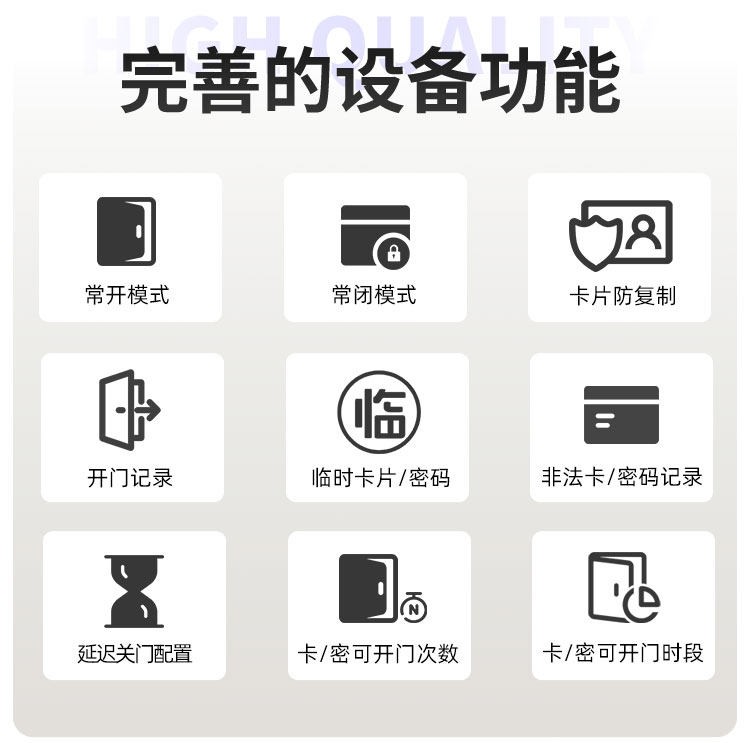 连江这款智能门锁提供室内门锁和防盗门锁两种选择,其中室内门锁尺寸为 2806521mm,适配 5050 锁体;防盗门锁尺寸为 3657021mm,适配 6068 锁体,可满足不同场景的安装需求。它采用铝合金一体成型搭配钢化玻璃面板打造,兼具坚固耐用的品质与简洁美观的视觉效果。门锁支持蓝牙无线通讯,解锁方式丰富多样,密码、卡片、蓝牙、钥匙四种方式随心选择,满足不同使用习惯与应急需求。其工作温度范围为 - 20~70℃,能适应多数地区的气候条件,采用碱性电池供电,安装更换便捷,是兼具安全性与实用性的门锁选择。